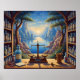 Ein zauberhaftes Interieur, gefüllt mit Glasgefäßen, Pulvern und Instrumenten, öffnet sich durch einen eleganten Torbogen zu einer lichtdurchfluteten Landschaft dahinter. In der Mitte ruht eine zarte Waage in ruhiger Symmetrie und spiegelt Themen der Harmonie, Transformation und Entdeckung wider. Warmes Licht ergießt sich über die Szene und verbindet das Geheimnis des Alchemistenstudiums mit der weitläufigen Schönheit des fernen Horizonts. Dieses Werk lädt zu einem Gefühl des Staunens ein, wo Wissenschaft, Natur und Vorstellungskraft aufeinandertreffen.