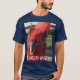 Dieses Männerhemd verfügt über ein Foto auf der Vorderseite eines Hahns, und das untere Ende des Fotos sagt The Chicken Whisperer in weißem Schriftart.