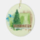 Washington-Staats-Kontur mit einem Spritzen der Bäume des blauen Wassers und des Immergrüns auf einem blassen Frühling grünen Hintergrund. Hintergrundfarbe kann geändert werden.