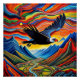 A.I. erschuf die Interpretation von lebhaften Farben, die durch den Himmel und die Anden Berge schlüpfen, in einer surrealen Landschaft, während ein Condor majestätisch über dem Berg steigt. Darunter schlängelt sich ein kurvenreicher Fluss durch ein Tal mit kultivierten Feldern.