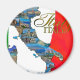 Italien gefüllt mit kleinen Postkartenbildern und italienischem Flaggenhintergrund.