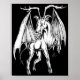 Ein Kunstwerk/Design des Jersey Devil aus New Jersey Folklore. Der Jersey Devil ist ein legendäres Wesen, das angeblich die Pine Barrens von Süd-New Jersey, Vereinigte Staaten, bewohnen soll. Die Kreatur wird oft als fliegender Zweibeiner mit Hufen beschrieben, aber es gibt viele Variationen. Luke Kegley (c) 2017. LTKArtwork.