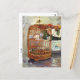 Als Postkarte mit dem Gemälde The Cage (1885) von Berthe Morisot (1841-1895) war sie eine französische Impressionistin. Die Kunstkritikerin, Gustave Geffroy, nannte ihre les trois grandes dames, die drei Gnaden des Impressionismus, zusammen mit Mary Cassatt und Marie Barcquemond. Dieses Bild zeigt einen Korbvogelkäfig auf einem Tisch mit einer Schüssel Blume aus der Keramik.