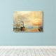 Der kämpfende Temeraire umarmte ihren letzten Berth, um von Joseph Mallord William Turner 1838 (1839) (1775-1851) aufgeteilt zu werden. Eine Vintage Reise und Transport Viktorianische Kunst maritimen Malerei. Eine Wassersaison bei Sonnenaufgang oder Sonnenuntergang. Dieses Schiff war eines der letzten Schiffe zweiter Klasse, das 1805 in der Schlacht von Trafalgar eine einzigartige Rolle spielte. HMS Temeraire, bekannt unter seiner Crew als "Saucy Temeraire" oder "Fighting Temeraire", war ein 98-jähriges Schiff. Es ging 1838 in den Ruhestand. Das Gemälde zeigt die letzten Augenblicke der Existenz des Schiffes nach der Pensionierung. Auf dem Bild wird es in der Themse abgeschleppt, von Sheerness zu seinem letzten Liegeplatz Rotherhithe, 1838, um für Schrott aufgebrochen zu werden. Turners Konfiguration ist ziemlich bizarr, sodass das wichtigste Objekt, das alte Kriegsschiff, gut positioniert ist, um die links des Gemäldes. Die Gnade von Temeraire wird im Vergleich zum heutigen, mit Dampf angetriebenen, schmutzigen schwarzen Tug weiter erhöht.