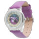 Kinderuhr aus Edelstahluhr mit lila Lederarmband