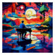 A.I. erstellt Print of vibranwing szene zeigt eine Person, die ein Klavier gegen einen zauberhaften, sternhaften Nachthimmel über einem bunten Kubist spielt, surreal Landschaft umfasst sanfte Hügel, Bäume und einen See, der die leuchtenden Himmelskörper reflektiert