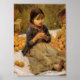 Vintage Bild aus dem Gemälde von John William Waterhouse. Kleines Mädchen sitzt auf einer Decke, umgeben von Orangen. Ein süßes Bild einer altmodischen Kindheit. Öffentlicher Bereich.