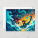 Der kleine Pirate kämpft gegen ein Seemännchen auf Postkarte