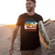 Mach dich bereit, dich von der Schule zu verabschieden, denn der Sommer ist fast hier! Der lässige T - Shirt mit einer atemberaubenden 70er-Farbpalette mit Retro-Vintagen Sonnenuntergangsfarben. Die blau, gelb, orange und rot Streifen ergänzen perfekt die Surfer-Silhouette, die an einem Palmenstrand mit Wellen im Hintergrund verläuft. Dieses Shirt ist das ultimative Sommerstatement, das Ihnen ein stilvolles und zuversichtliches Gefühl bescheren wird. Verpassen Sie nicht diesen Muss zu Ihrem Kleiderschrank!