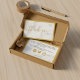 Erhöhen Sie das Entpacken mit einem gerahmten, weißen und grauen Marmor aus Gold dank der Einsteckkarte, die elegantes Skript mit Platz für eine persönliche Nachricht an Ihre Kunden, soziale Griffe, Website, und eine weitere Bestellung Rabatt kombiniert. Beilagen wie diese stärken die Loyalität, ermutigen zu Rezensionen und treiben wiederholte Käufe voran, wenn sie einen klaren Aufruf zum Handeln und ein verlockendes Angebot enthalten. Behalt eine Kopie kurz und scannbar; erwäge, einen QR-Link zu Pflegetipps oder eine Rezensionsseite hinzuzufügen, um die Verlobung noch weiter zu steigern. Alle Texte und Farben können entsprechend dem Markenstil bearbeitet werden.