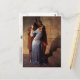 "Der Kuss" (1859) des italienischen Malers Francesco Hayez, führender Künstler der Romantik Mitte des 19. Jahrhunderts Mailand. Eine Frau in blauem Kleid küsst einen Mann, möglicherweise ihren Liebhaber, unten auf der Treppe. Er trägt rote Strumpfhosen, einen Kap und einen Hut mit einer Feder.