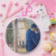 Dieses Design zeigt die Kunst des norwegischen Malers Edvard Munch (1863-1944). Es zeigt einen Mann und eine Frau, die sich neben einem Fenster küssen. Auf der anderen Seite des Fensters sieht man einen großen Zypressenbaum. Das Paar ist in einer Umarmung gefangen, was auf eine tiefe Zuneigung hindeutet. Sie teilen einen intimen Moment der Liebe.
