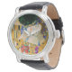 Uhr, Klassische Damenuhr mit schwarzen Lederarmband
