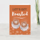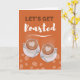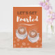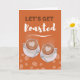 Lass’s Get Roasted, Coffee Get Together Einladung. Auf dem Cover sind ein Paar Latten in Bechern mit Herzen dargestellt. Füllen Sie Ihre Kaffee-Party-Informationen im Inneren aus. Art, Bild und Vers Copyright © Shoaff Ballanger Studios, 2022.