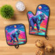 Der lebendige Neon Gorilla in einem surrealen Dsch Ofenhandschuh & Topflappen-Set