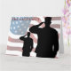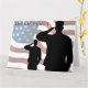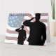 Ehre den Gefallenen mit dem letzten Lob. Zu Ehren unserer gefallenen Mitglieder der Streitkräfte. Salinieren von Soldaten mit der amerikanischen Flagge im Hintergrund.