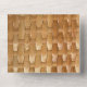Ein glänzend lackiertes Korbflechtbild aus Korbgeflecht mit einem hochglanzlackierten Glanz. Ein natürliches, geschliffenes rustikales Aussehen, bestehend aus mehreren horizontalen Holzsträngen, die über mehrere vertikale Stränge in verschiedenen hellbraunen und beigen Tönen geflochten sind.