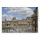 Eine horizontale Note mit einem schönen Bild des Louvre in Paris, Frankreich. Exquisite Details der Architektur und der Touristen gehen außerhalb des weltberühmten Museums, das Meisterwerke wie die Mona Lisa beherbergt.