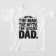 Feiern Sie den Tag des Vaters im Stil mit diesem Vintagen "Der Mann. Der Mythos Die Legende. Vater." Abschlag. Dieses klassische Shirt mit einer bedrückten Retrotypografie eignet sich hervorragend für Väter, Großväter und Vaterfiguren, die legendäre Anerkennung verdienen.