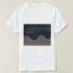 Der weiße T - Shirt dieses Mannes wurde mit meiner Darstellung von Bergen unter dem Nachthimmel entworfen, die mit Sternen und einem Polarlicht gefüllt sind.