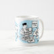 Der Marketing Manager wird auf einem Verkaufspunkt Kaffeetasse