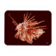 Farbige Bleistifskizze: Rote Limonenfische werden in weißen Streifen mit Rot, Maron oder Braun getappt. Erwachsene können bis zu 17 Zoll (43 cm) wachsen, Jugendliche können kurzer als 1 Zoll (2,5 cm) sein. Sie können bis zu 10 Jahre leben. Der Fisch hat große giftige Stacheln, die wie eine Mähne aus dem Körper hervorragen, was ihm den gemeinsamen Namen des Limonfisches verleiht.