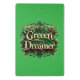 Dieses auffallende Design besticht durch die Worte "Green Dreamer" in einem spielerischen, mehrfarbigen Schriftart, der mit eleganten goldenen Touchs, die schimmern und ins Auge blicken, besticht. Die Farben vermischen sich harmonisch, regen ein Gefühl von Kreativität und Hoffnung an und laden die Zuschauer dazu ein, ihre Wünsche und Träume zu erfüllen. Ideal, um Positivität und Fantasie inspirieren! "Das Originalbild wurde von Meta AI erstellt. AI generierte Kunstwerke. Lizenziert unter CC BY-SA 4.0.