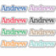 Farbige Aufkleber mit dem Christlichen Namen Andrew.