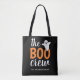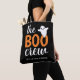 Moderne, auf Halloween-Süßigkeiten abgestimmte Totbeutel-Gestaltung mit dem Text "The Boo Crew" in orangefarbenen und weißen Buchstaben mit einem kleinen Geisterakzent. Bestellen Sie die Mitglieder Ihrer Crew. Personalisieren Sie das benutzerdefinierte Monogramm mit einem individuellen Namen oder Familiennamen.