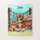 Der Name der personalisierten Girl sitzt mit ihrem Puzzle