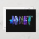 Der Name Janet in 3D-Leuchten (Foto) Postkarte