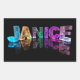 Der Name Janice in 3D-Leuchten (Foto) Rechteckiger Aufkleber