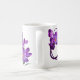 Der Name Olivia ist lila, der Blumenspass ist indi Kaffeetasse