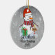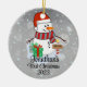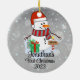 Ein skurriler Weihnachtsbaumschmuck mit einem bezaubernden Schneemann umgeben von zarten Schneeflocken. Passen Sie es mit dem Namen Ihres Kindes und dem Jahr für eine personalisierte Touch an, die die Freude der Saison erweckt. Verwenden Sie die Schaltfläche "Personalisieren", um Ihre Wünsche anzupassen.