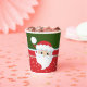 Der niedliche Weihnachtsmann sieht sich den tradit Pappbecher
