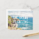 Eine individuell gestaltbare Postkarte mit einem Originalfoto der maurischen Küste mit den essbaren Worten: "Der Ozean ruft und ich muss gehen" in der Mitte.