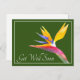 Atemberaubendes nah-up Foto eines atemberaubenden Paradiesvogels Blume vor grünem Hintergrund. Die Blume deckt die Vorderseite dieser Postkarte ab, die als Dankeschön-Karte, Geburtstagskarte oder jede andere Karte Ihrer Wahl verwendet werden kann. Passen Sie es mit Ihrem Text und/oder Bildern an, um es zu einem einzigartigen Bild zu machen!