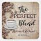 Der perfekte Mischcoffee, der rustikales Holz verk Quadratischer Aufkleber