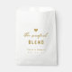 Maßgeschneiderte Hochzeit- und Brautparty-Begrüßtaschen mit "The Perfect Blend" modernem Handskriptdesign. Wählen Sie aus weißen, ecru- und kraft-Papiertüten.