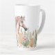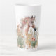 Eine schöne Latte-Tasse mit einem beige-weißen Pferd und Herbstblättern und Blumen
