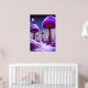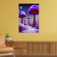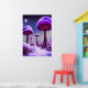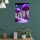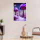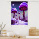 Ein großer Pilzwald, wo Sie große lila Pilze, blauer Himmel, Schnee und Winter finden. Dies ist eine von der KI generierte Kunst