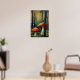 Dieses Gemälde aus einem Wald mit blühenden, rot gekappten Rollhockern liegt zwischen hohen Bäumen und ist die perfekte Wandkunst, um eine naturlich inspirierte Atmosphäre in Ihrem Zuhause zu schaffen.
