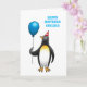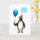Der phantastische Party Pinguin ist bereit für das Party, hält einen blauen Ballon in seiner Hütte und trägt einen Party Hut.