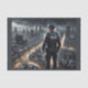 Der Polizeibeamte beobachtet die Stadt, um Sie zu Seidenpapier