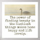 Wir alle sehen Schönheit auf unsere eigene Art. Zeigen Sie Ihre Wertschätzung mit diesem Zitat zum Thema Schönheit: Der Power, Schönheit in den demütigsten Dingen zu finden, macht Zuhause glücklich und das Leben schön.