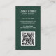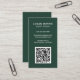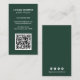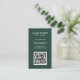 Moderne vertikale Visitenkarte mit einem einfachen und minimalistischen Stil mit QR Code auf der Vorderseite und Social Media Icons auf der Rückseite. Alle Gestaltungselemente sind in Weiß auf einem waldgrünen Hintergrund gehalten. Ein schlichtes und minimales Design, das für jedes Unternehmen beruflich angepasst werden kann.
