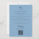 Light Blue Dainty Blume QR Code alle in 1 Einladung Hochzeit. Moderne botanische Hochzeitseinladung mit Kalligraphie-Skript und handgemalten Aquarell Wild Blume in hellblau mit Details und QR-Code-UAWG im Hintergrund. Sie können die Formulierung, den Stil, die Farbe und die Größe des Schriftartes vor und hinter der Einladung personalisieren. Bitte kontaktieren Sie mich für passende Artikel.