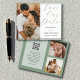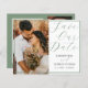 Elegante Ankündigung Datum freihalten ist perfekt, um Ihre Hochzeitspläne in Gang zu bringen. Es verfügt über eine Fotovorlage und große 'Save the Date' Typografie in Salbei grün auf weißem Hintergrund. Passen Sie Ihre persönlichen Daten an.