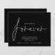QR Code entschieden wir uns Save the Date für ewig schwarz. Ein Preis SMALLER 4,5" x 5,6" Alternative. Erhältlich in einem SEMI-GLOSS 110 lb CARD STOCK, der die Standardoption (dicker für Einladungen) ist, ODER einem SATIN FINISH 80 lb THINNER PAPER STOCK (ideal für Gehäuse). Fügen Sie Ihren QR-Code auf der Rückseite Ihrer Hochzeitswebsite hinzu, indem Sie den QR-Code des Beispiels ersetzen. Weiße Typografie auf klassischem Schwarz-Design, um Ihre Gäste zu laden, Ihr Datum retten. Wir entschieden uns für Forever, welches in einem stilvollen Set-Skript ist in der Mitte. Die Erholung des Textes können Sie leicht personalisieren. Text- und Hintergrundfarben können geändert werden, wenn Sie Ihr Hochzeitstil besser Anzug über die weitere Option anpassen möchten.