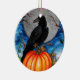 Originelle Malerei von Sandra Gale für die Halloween-Saison mit einem schwarzen Raben auf einem Kürbis. Das schöne Design für Kinder und Erwachsene, um den schönen Halloween-Urlaub zu feiern.